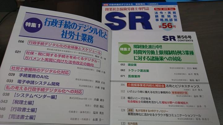 日本法令 開業社会保険労務士専門誌 SR 第56号(2019年12月号)の連載記事『私が活用するHRテクノロジー』に”業務効率化に活かせるクラウド型コミュニケーションツール”というテーマで記事を書かせていただきました。